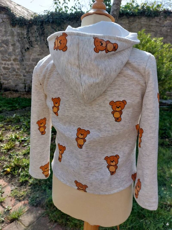veste sweat à capuche et zipé, oursons. Capuche doublé en coton. taille 4 ans et 6 mois.